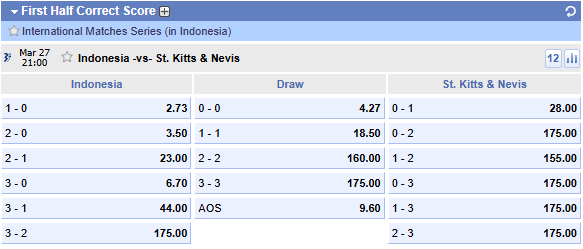 Contoh Pasaran First Half Correct Score